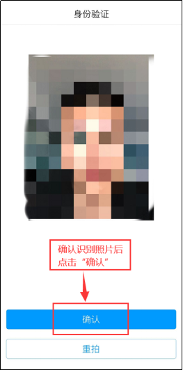 3.进行人脸识别,并根据系统口令完成“眨眼”等人像采集识别动作,识别成功后点击“‘确认”;(注意:请保证识别时光线充足)