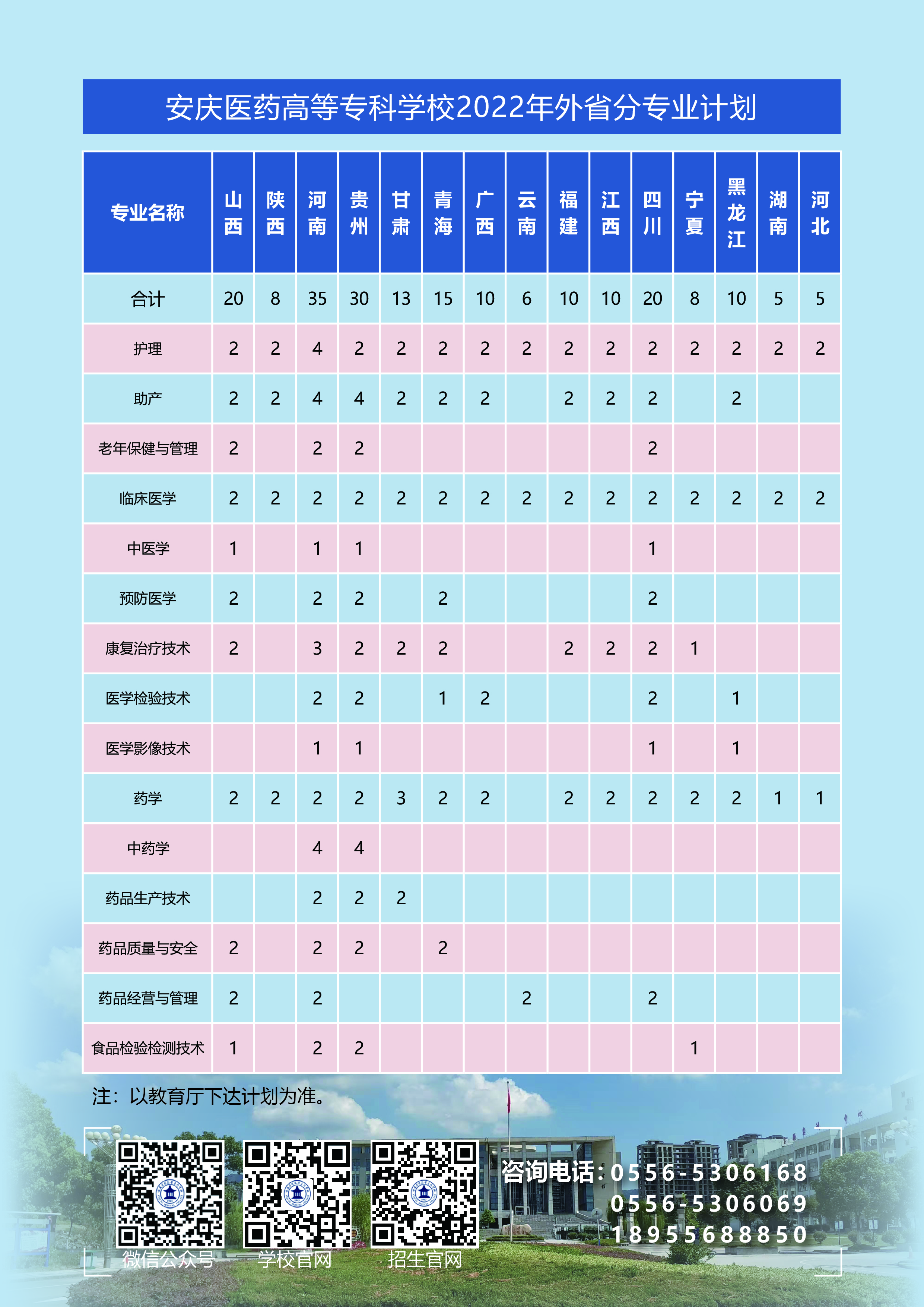 2022年普通高考招生计划(外省)