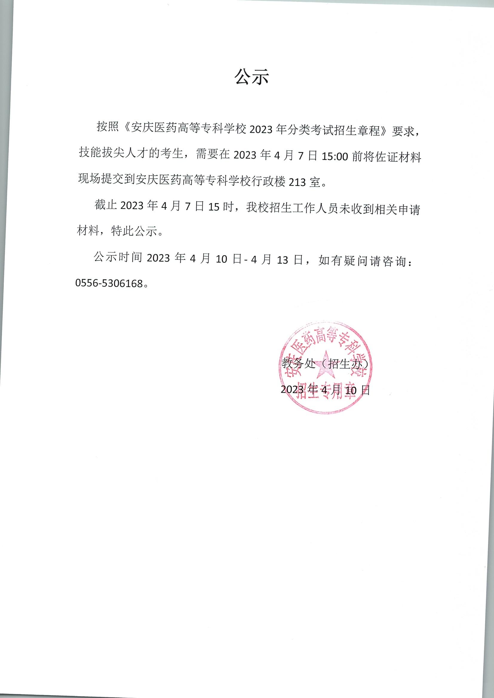关于公布2023年分类招生校考分数线的通...