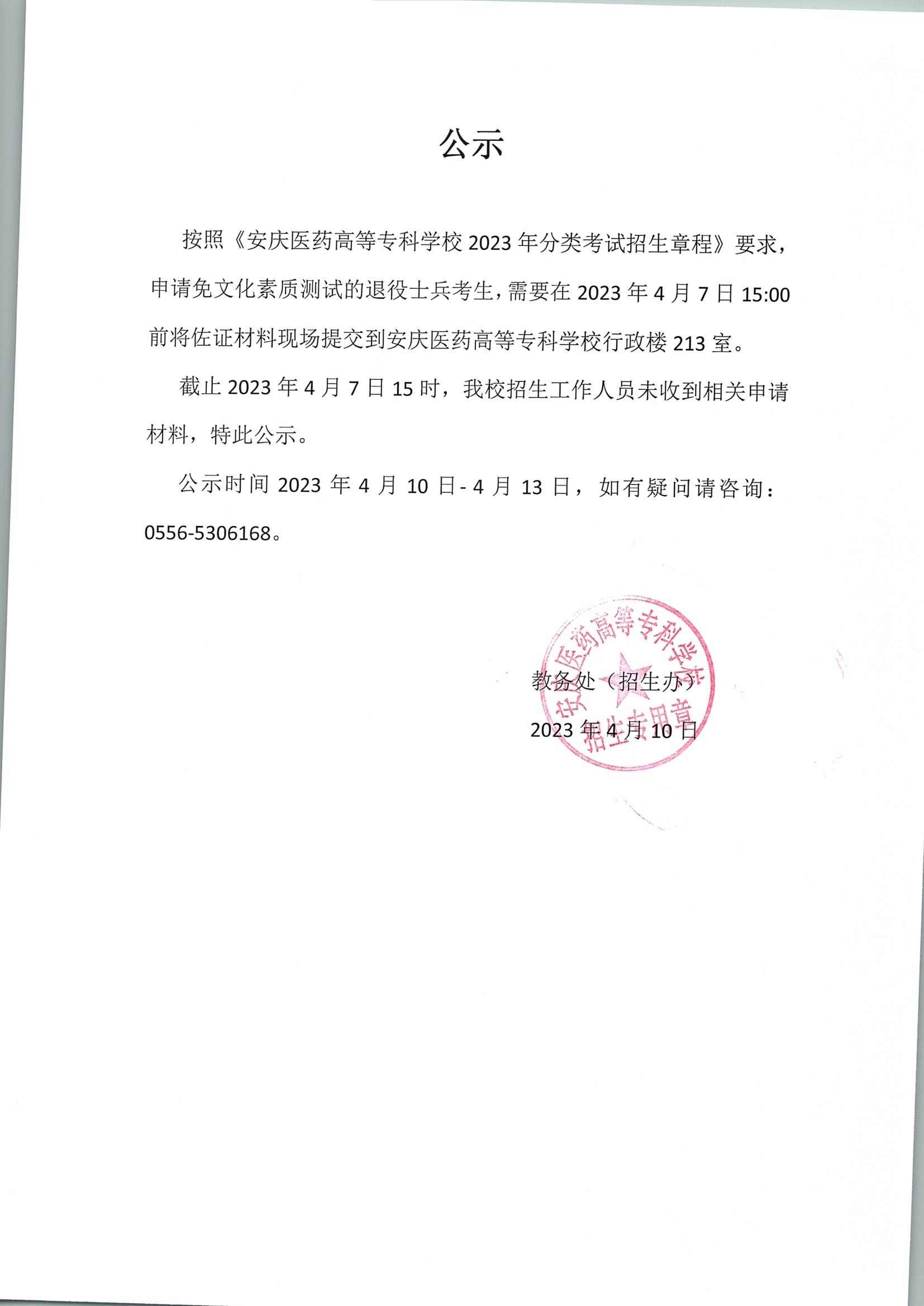 2023年退役士兵公示