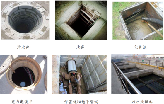 (一)地下有限空间。如地下室、地下仓库、地下管沟、地坑、设备基坑、地窖、沼气池、化粪池、污水处理池等。