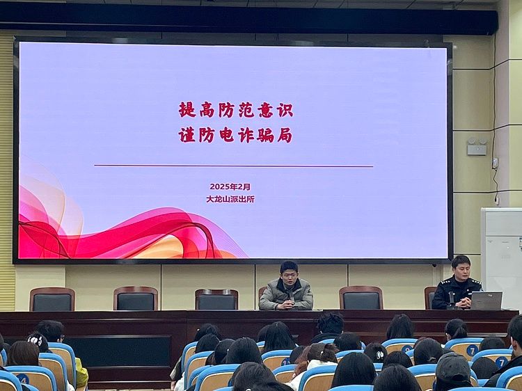 讲座伊始,民警深入浅出地阐述了电信网络诈骗的定义,使师生们对电信诈骗有了清晰的认知。随后,民警结合周边高校发生的真实电信诈骗案例,生动且细致地剖析了常见的电信诈骗类型,涵盖网络兼职刷单、冒充客服与熟人、非法买卖电话卡和银行卡、“杀猪盘” 以及校园贷等。同时,民警还展示了详实的今年会诈骗数据,用数据警醒大家,电信诈骗近在咫尺,务必时刻保持警惕。讲座尾声,民警分享了一系列实用的防范电信诈骗方法,从谨慎对待陌生信息、保护个人隐私,到遇到可疑情况及时报警等,为师生们筑牢了一道坚实的反诈防线。