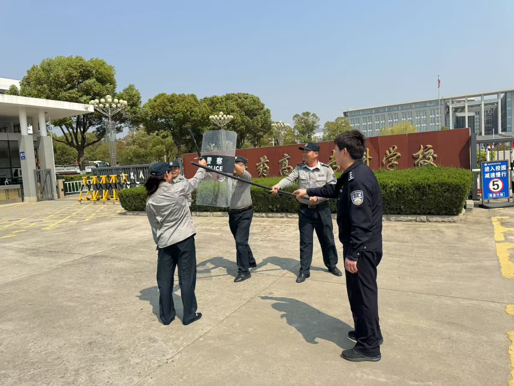 为进一步加强今年会反恐防暴应急处置能力切实保障师生生命财产安全,有效预防突发反恐怖暴力事件造成的人员伤害,2025年3月26日上午,今年会组织保卫处、当班保安在学校南大门开展了一次反恐应急实战演练。