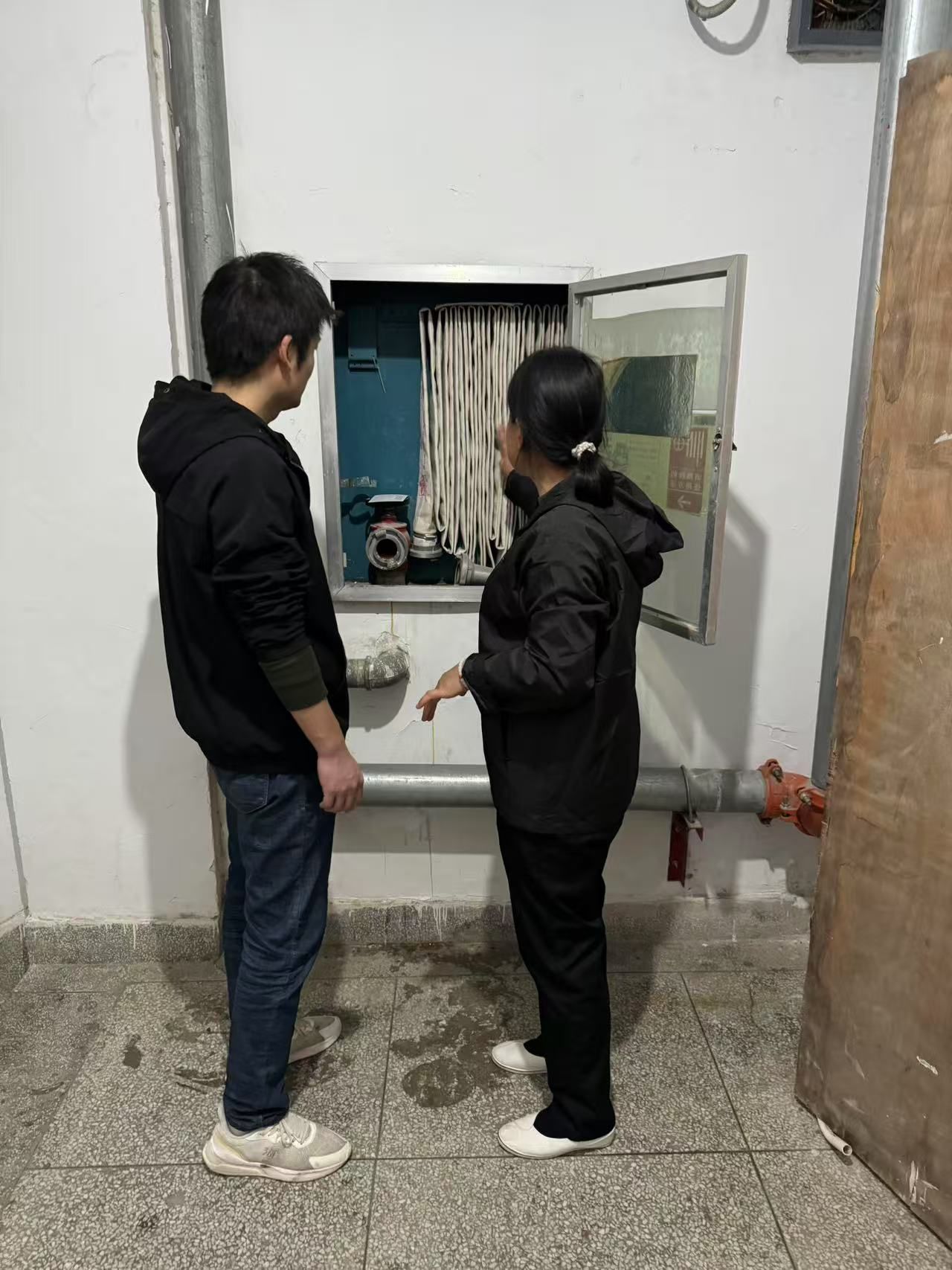 此次检查由保卫处负责人带队,组织物业工作人员、安保人员深入校园各重点场所,重点核查了消防设施:灭火器、消火栓、应急照明等设备是否完好有效;安全通道:疏散通道、安全出口是否畅通,标识是否清晰;管理台账:消防安全责任制落实及日常巡查记录是否规范。