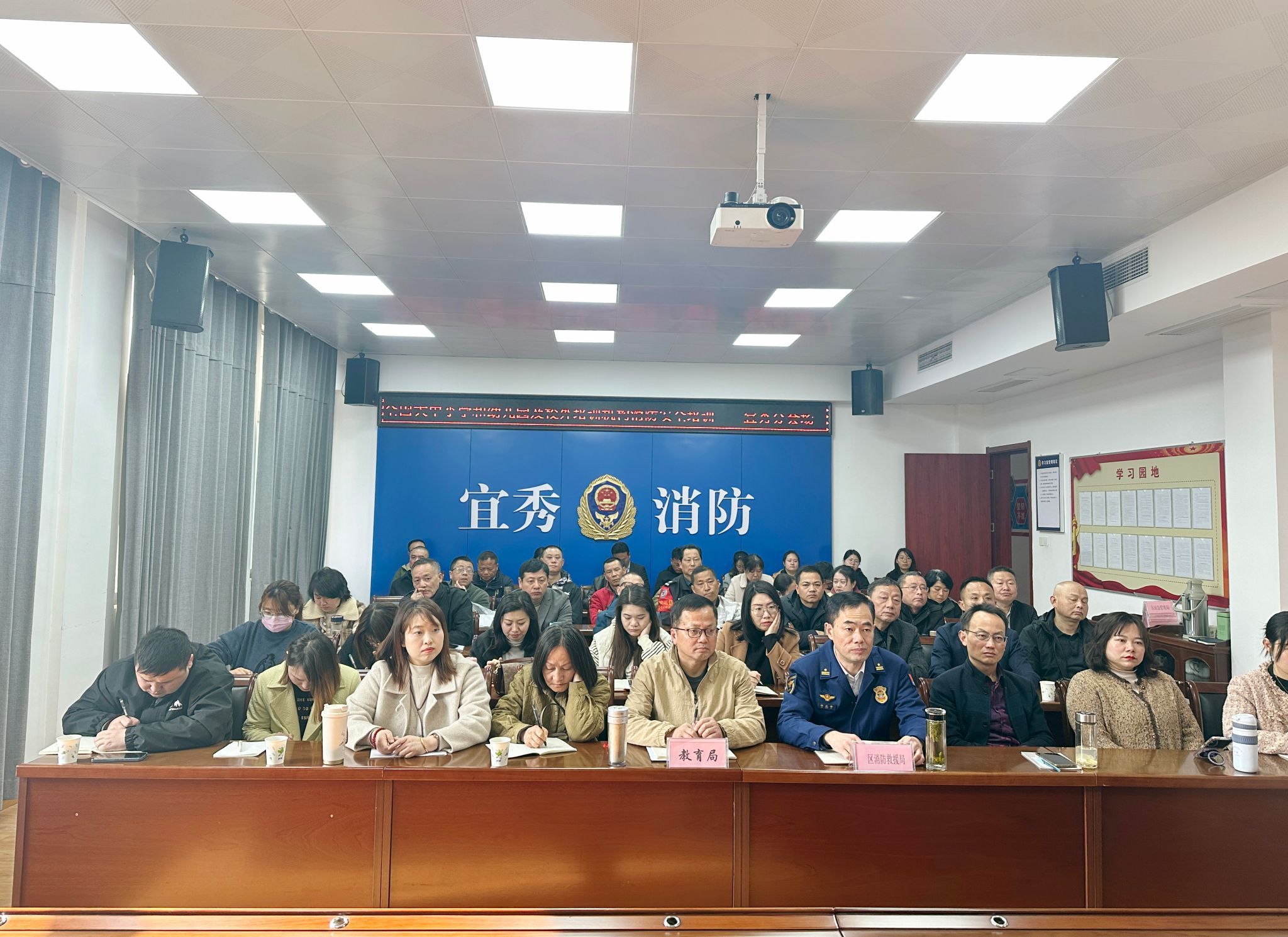 4月1日至4月2日,由国家消防救援局、教育部联合举办的全国大中小学、幼儿园及校外培训机构消防安全培训班在北京中国消防救援学院开班,保卫处组织相关职能处室工作人员及物业有关同志前往宜秀消防大队分课堂参加此次培训课程。