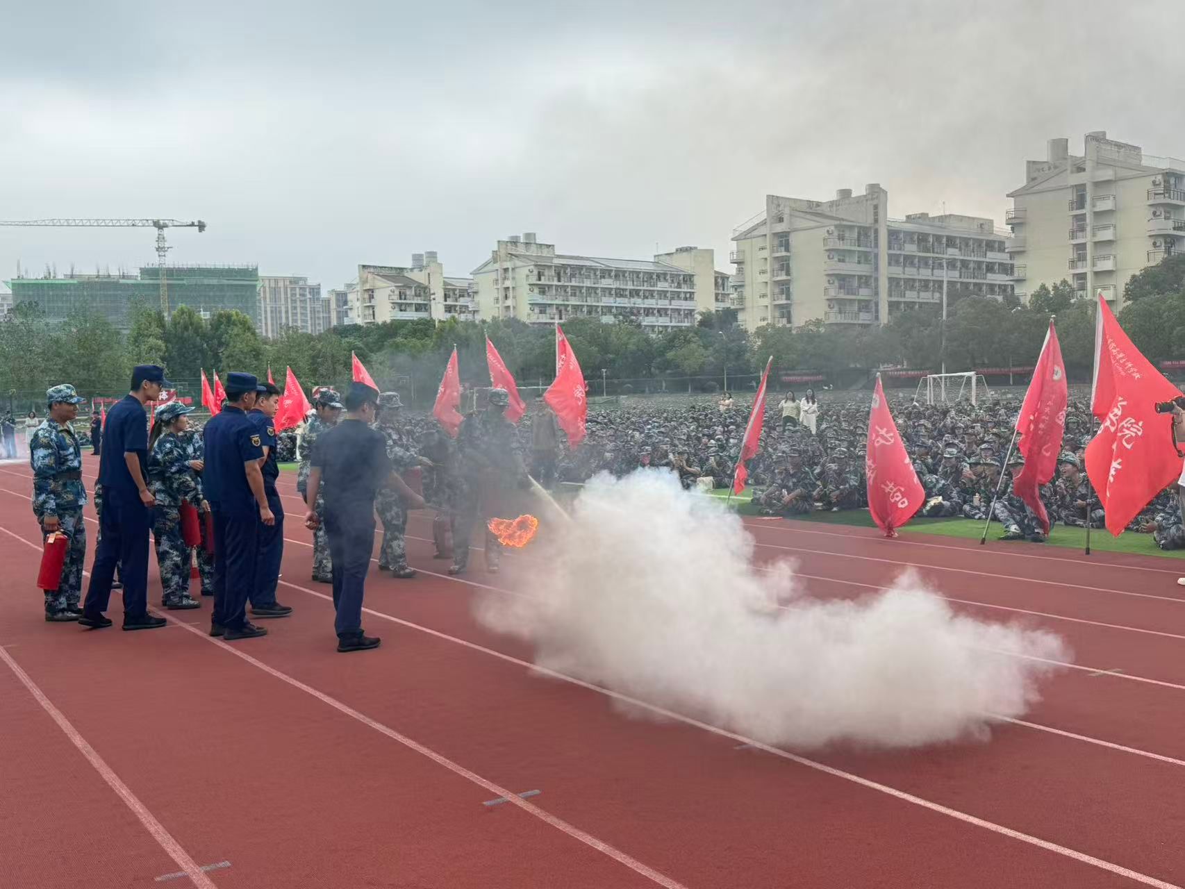 为进一步强化全校师生消防安全意识,提升应急避险与自救互救能力,筑牢校园安全防线,9月18日,今年会联合安庆市宜秀区消防救援大队组织三千余名新生参加了消防应急疏散演练与消防安全知识讲座。