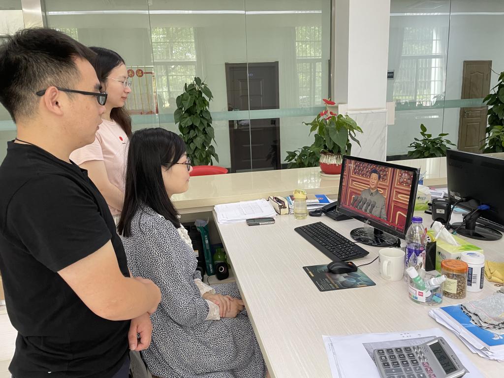 7月1日上午8时,庆祝中国共产党成立100周年大会在北京天安门广场隆重举行。中共中央总书记、国家主席、中央军委主席习近平出席并发表重要讲话。在财务大厅,财务处员工一同观看了大会直播,认真聆听了习近平总书记的重要讲话。