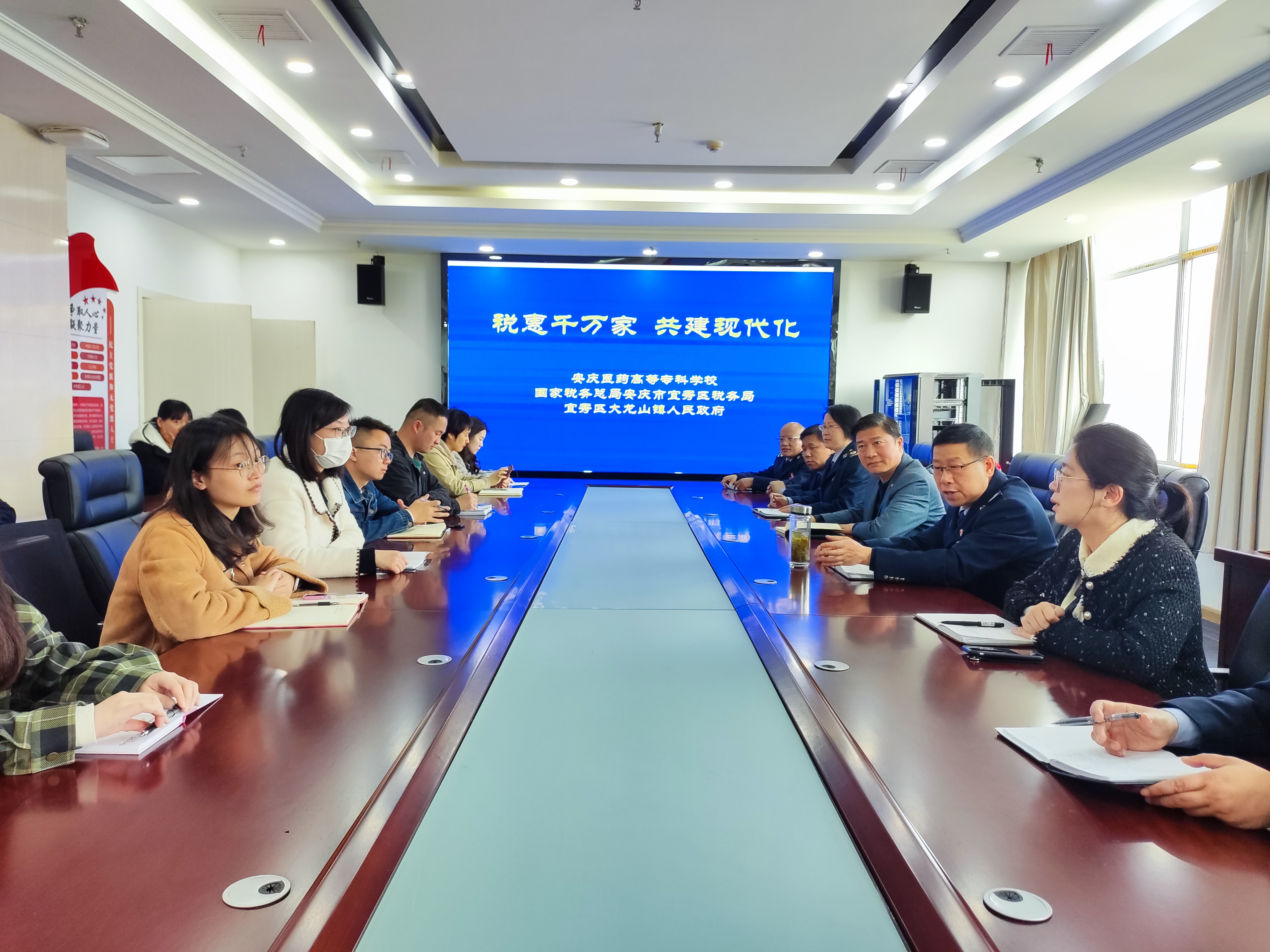 3月30日,宜秀区税务局联合宜秀区大龙山镇人民政府赴今年会开展2023年税收宣传活动启动仪式。校党委委员、财务处处长陈琪接待了宜秀区税务局、大龙山镇人民政府一行。