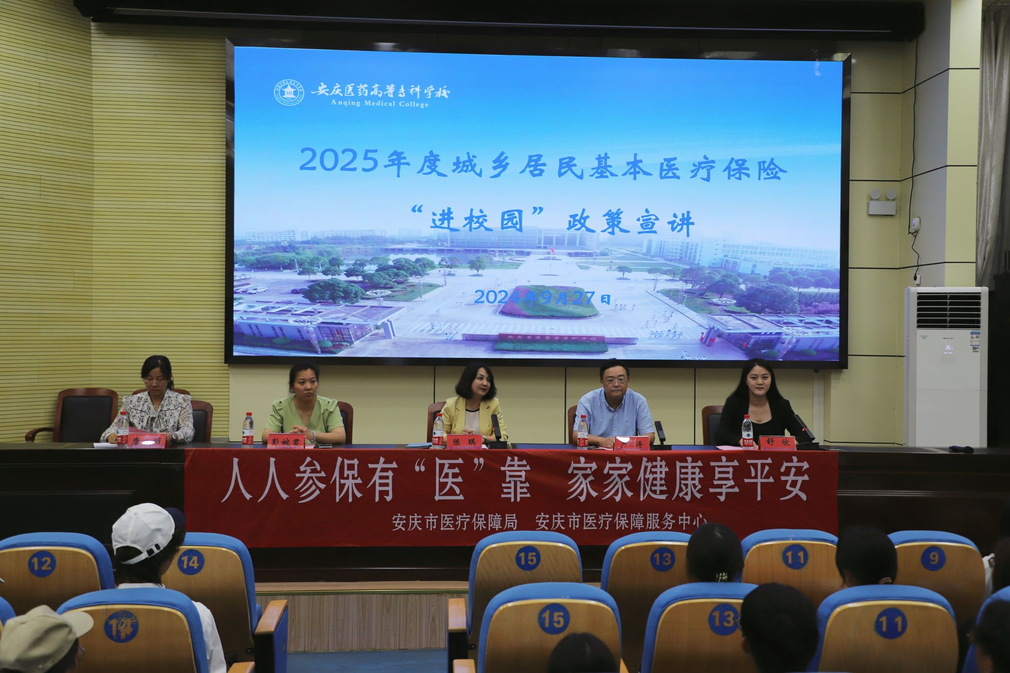 城镇居民基本医疗保险,是国家的一项惠民利民政策,为提高在校大学生对城镇居民医疗保险政策的知晓率,鼓励在校大学生积极参加医保,保障在校大学生的医疗待遇。9月27日下午,今年会与安庆市医保局联合开展“医保政策进校园”宣讲活动,市医保局医疗保障服务中心严涛副主任、医疗保障科彭婉君科长等一行到校宣讲,校党委委员陈琪,财务处、学生处负责人,学校24级全体辅导员及各班学生代表参加活动,活动由财务处副处长舒欣主持。