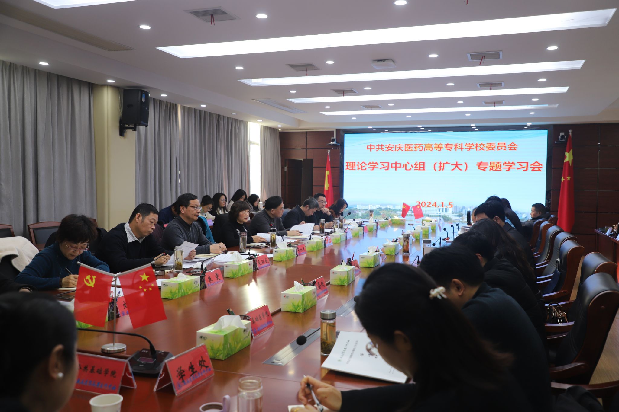 1月5日下午,校党委召开理论学习中心组专题学习会议。校党委书记叶林霞主持会议并讲话。校领导朱庆丰、张仕庆、陈燚、毛以成、朱三九、朱雯、陈琪、刘毅及附院、各学院、处室(中心)负责人及学校主题教育办工作人员等参加会议。