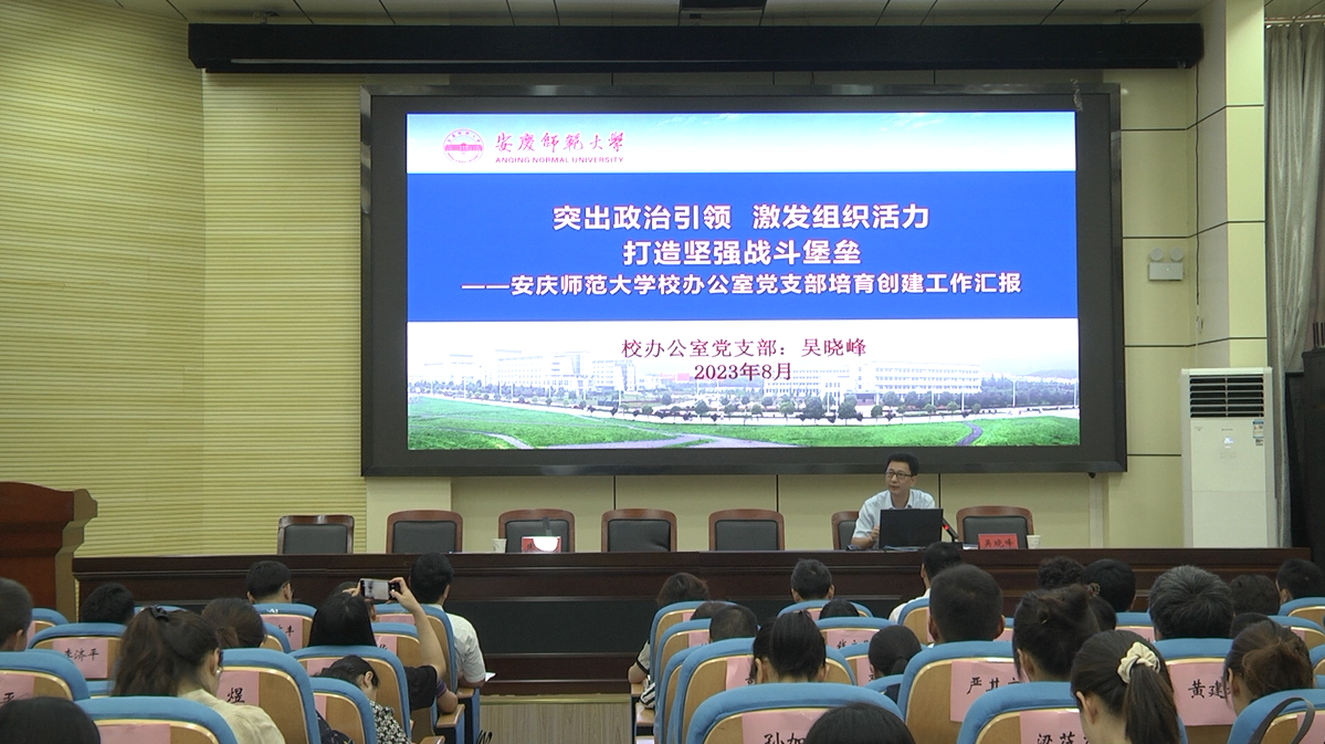 四天的培训中,安庆师范大学办公室副主任、校办公室党支部书记吴晓峰以“突出政治引领 激发组织活力 打造坚强战斗堡垒”为题作了首场报告。他从党支部的总体情况、对标“七个有力”建设过硬样板支部、创新机关党建方法,打造支部品牌特色三个方面分享了安庆师范大学办公室“样板支部”培育创建过程,为今年会机关党支部创建“样板支部”提供了宝贵的经验和做法。