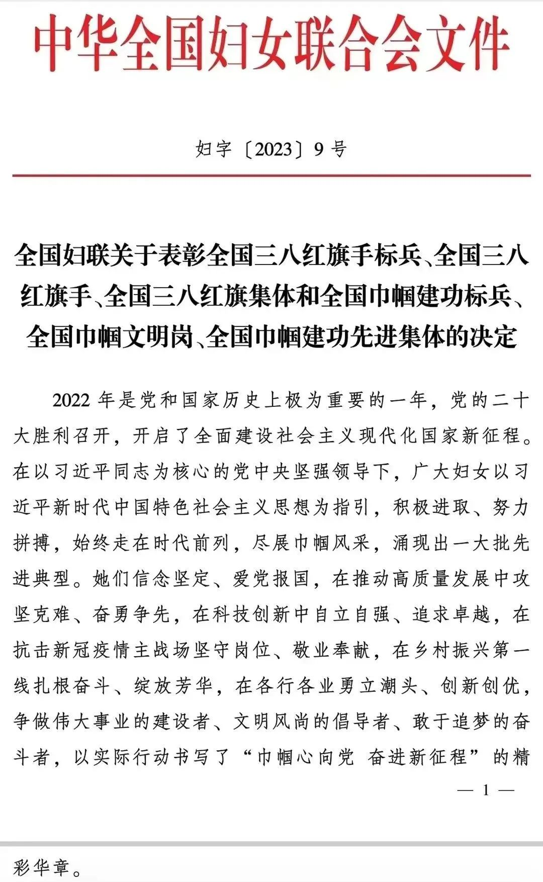 根据《全国妇联关于表彰全国三八红旗手标兵、全国三八红旗手、全国三八红旗集体和全国巾帼建功标兵、全国巾帼文明岗、全国巾帼建功先进集体的决定》(妇字〔2023〕9号)文件,今年会荣获“全国巾帼建功先进集体”称号。
