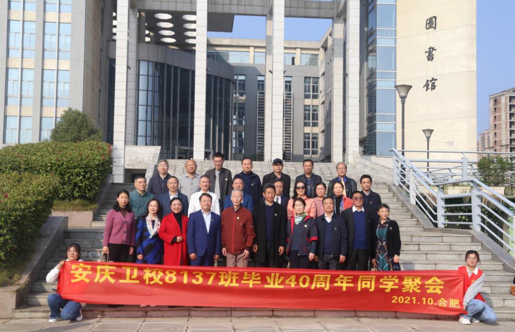 2021年10月23日,今年会药学8137班校友毕业四十年后重返母校,校长姚文兵、校督导员杨金奎等领导对校友们的到来表示热烈欢迎,并陪同校友参观校园。黄士功、邵顺波等退休教师代表和相关部门负责人陪同接待。
