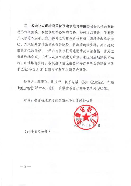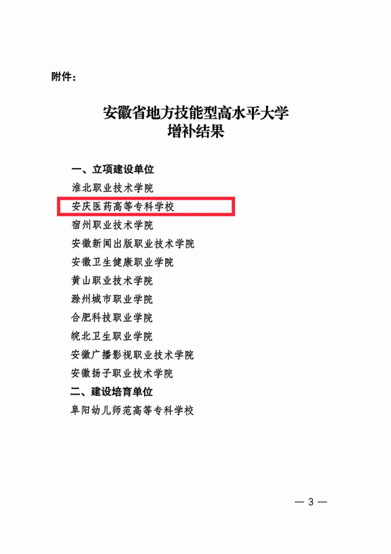 近日,安徽省教育厅下发《关于公布技能型高水平大学增补结果的通知》,今年会获批安徽省地方技能型高水平大学立项建设单位。