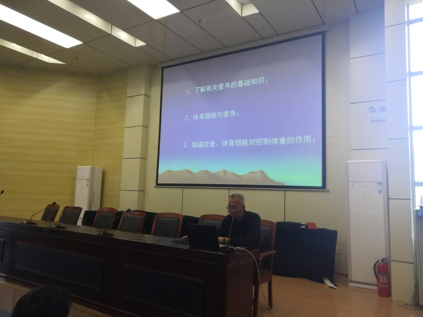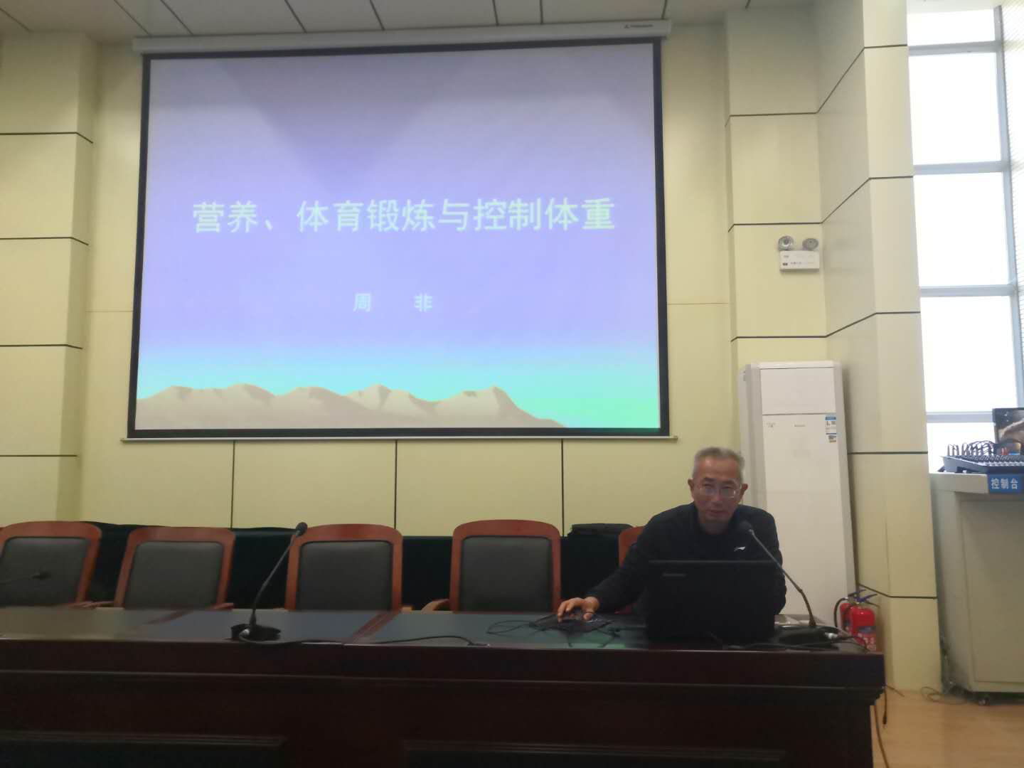 10月29日中午在学校学术报告厅公共基础部体育教研室周非副教授进行体育与健康系列讲座之二,题目是《营养、体育锻炼和控制体重》,首先让学生了解有关营养的基础知识,其次讲解体育锻炼和营养的关系,最后让学生知道营养和体育锻炼对控制体重的作用。实例得当,形象生动,受到同学们的欢迎。(撰文、供图:周非;审改:毛小明)