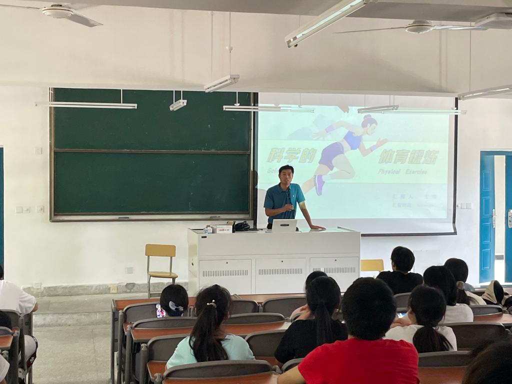 为营造学生参与锻炼的良好的氛围,提升学生的身体素质。6月9日中午,在阶梯教室一,公共基础学院王伟副教授为篮球选项班学生作了题为“科学的体育锻炼”的学术讲座。