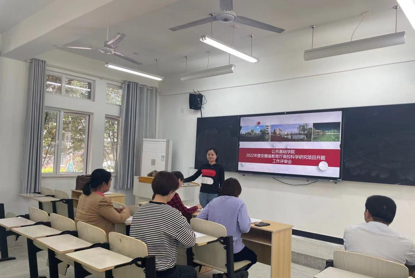 2023年5月23日中午,公共基础学院2022年度安徽省教育厅高校科学研究项目开题评审会在3栋教学楼3103召开。评审会专家由教授高旭、副教授江慧、副教授吴娟、副教授胡颖群及副教授刘乔组成。