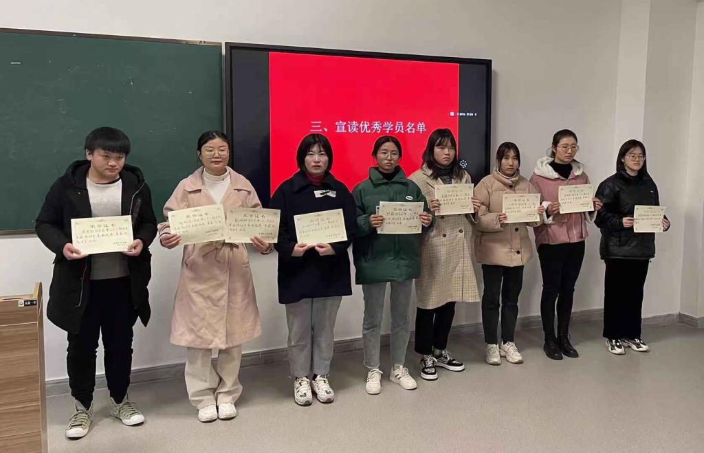 曹承娇就本期党课培训作总结讲话,对顺利结业的学员表示祝贺,鼓励大家在未来学习生活上不懈努力,全面发展,从行动上脚踏实地,一步一个脚印,以自己的实际行动争取早日加入党组织。