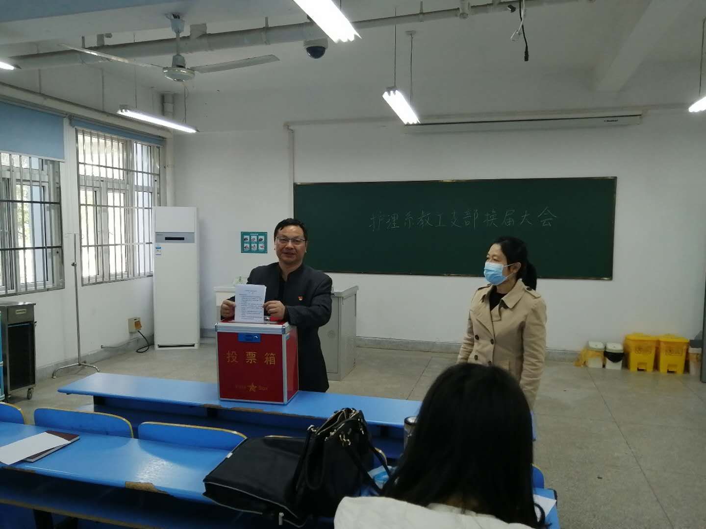 2020年4月22日上午9:30,护理系教工支部在护理实训楼一楼护理研究室召开了预备党员转正大会。会议由党支部书记金耀主持。