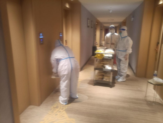 志愿者们经过专业培训后,两人一组去往12个隔离点协助医护人员开展转运隔离人员、核酸检测、编辑工作表送餐、环境消杀清点物资等工作。虽然看不清他们是谁,但我们知道他们是为了谁。他们用自己的无畏和专业,为这座城市铸造起了坚实的“安全屏障”。