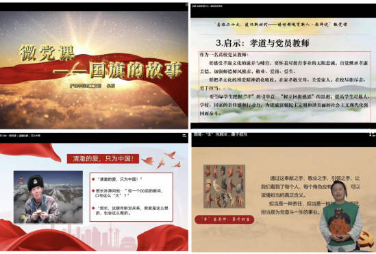 10月26日,经过6位评委评比,选出特等奖1名,一等奖2名,二等奖4名,三等奖7名。“国旗的故事”、“弘扬孝道文化,提升党性修养”、“‘手’当其冲,勇于担当”、“清澈的爱,只为中国”等内容,展现了党员教师们爱党爱国、爱校爱生的家国情怀,彰显了新时代高校教师的责任担当。