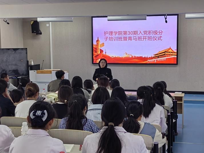 2025 年 4 月 17 日,护理学院第 30 期入党积极分子培训班暨青马班开班仪式在阶七教室顺利举行。护理学院党总支副书记路红春、培训班班主任、学生第一党支部全体党员、党课授课教师以及全体学员参加了此次开班仪式,仪式由培训班班主任方玉翠主持。