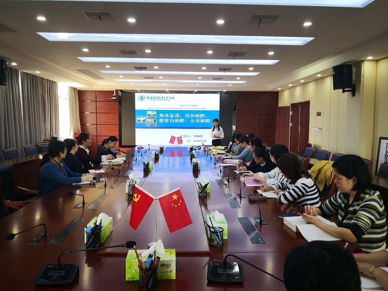 外科护理的集体备课由外护教研室主任刘晓蓓主备,备课内容是《外科护理》的“麻醉病人的护理”。备课过程中,刘晓蓓老师充分利用自身教学经验和所掌握的教学理论,对该章内容进行详细说课。参会教师也积极亮出自己的观点,共同研究了教学大纲,剖析了教材,对教学设计、教学重点的教学手段与方法、难点的突破等进行了深入讨论,商议解决的办法并达成共识。