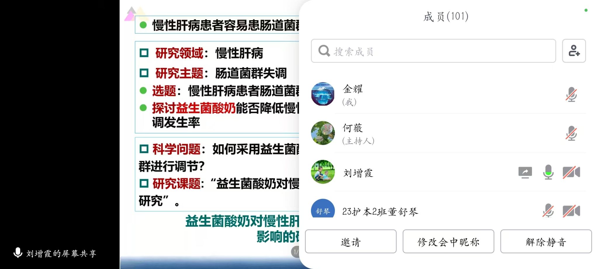 在讲座中,刘教授特别分享了自己的课题“基于网络的正念干预对TACE术后肝癌患者焦虑抑郁的影响及心理机制研究”,从选题背景到研究结论,通过介绍其选题的深度与广度,展现了科研探索的独特魅力,让师生们深刻理解了科研选题的重要性与实践价值。
