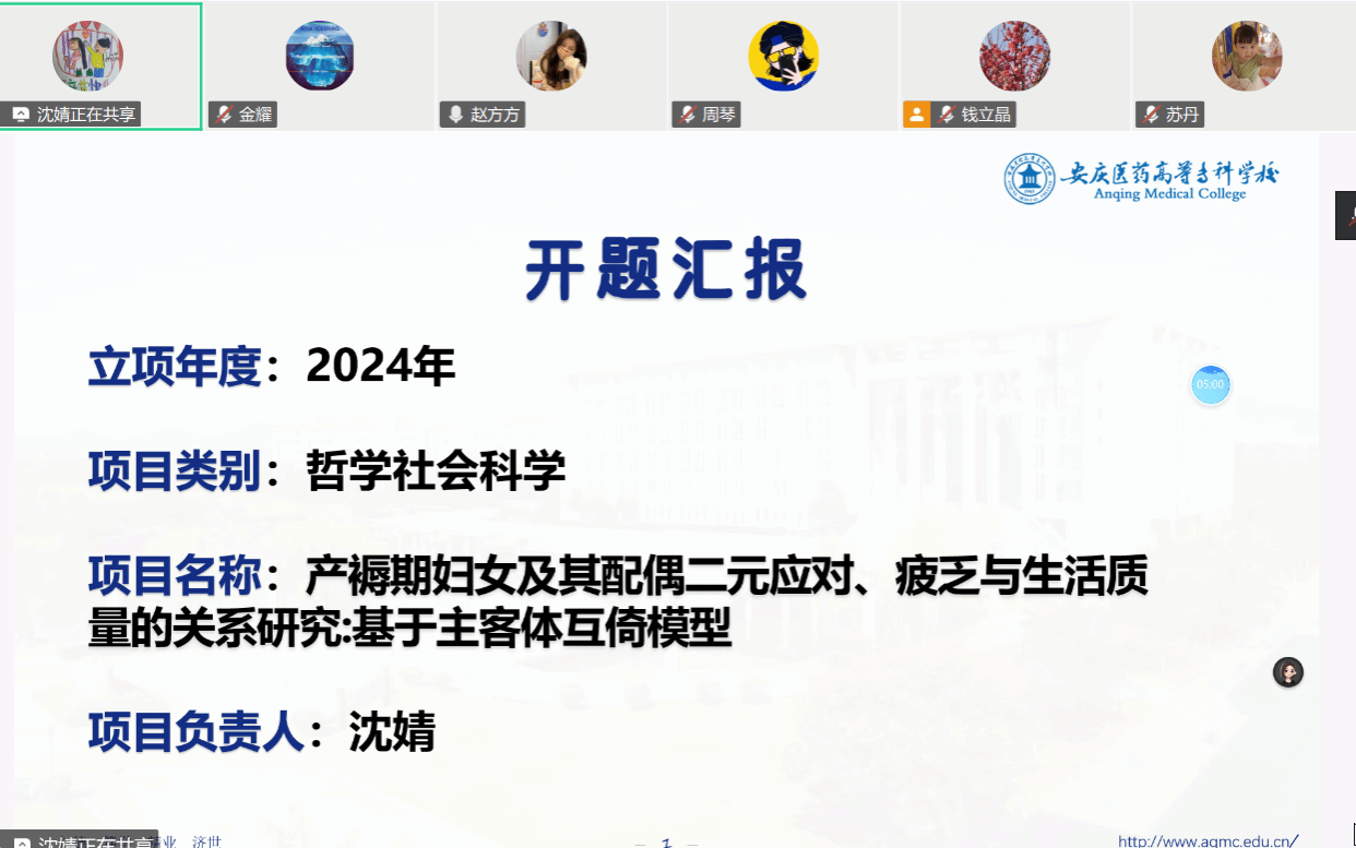 依据《校科研项目开题、中期检查及结题工作方案》,学院特邀安徽医科大学护理学院5位专家组成评审小组,由护理学院院长钱立晶主持,项目负责人及学院部分教师线上参会。