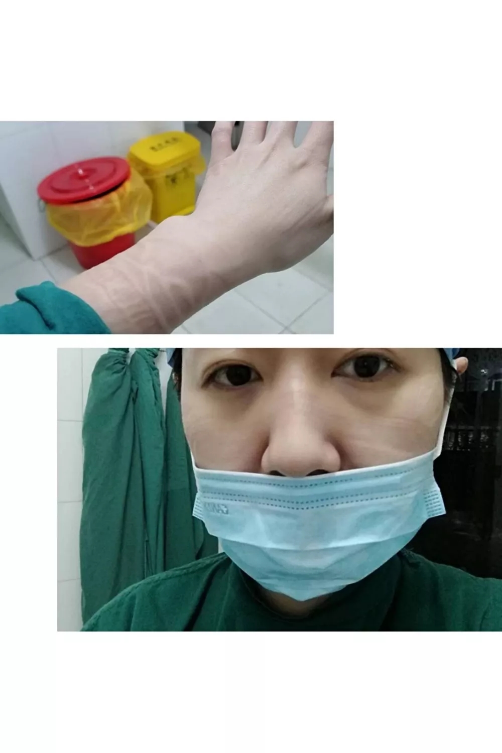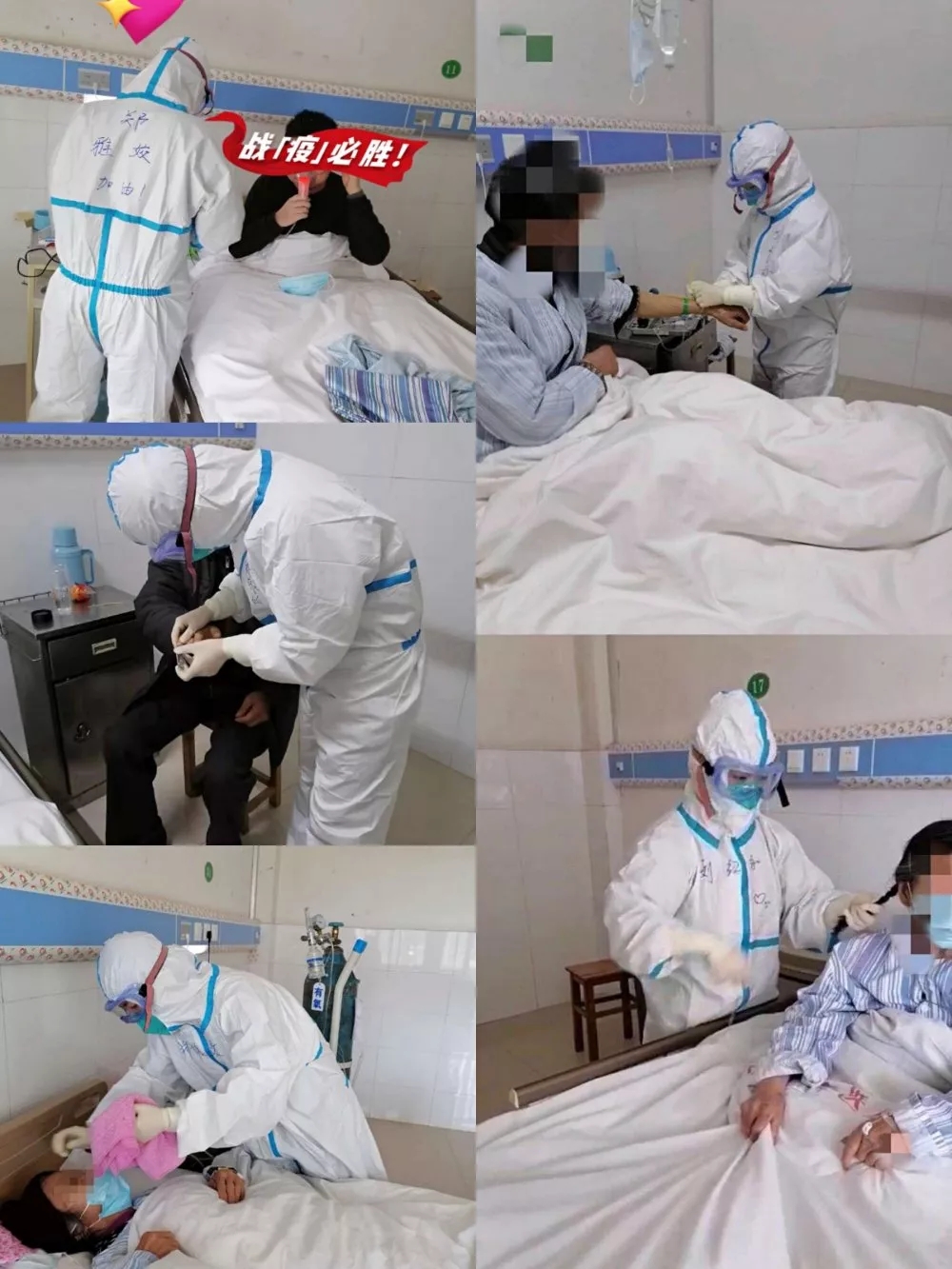 每天进入隔离病房交接完就开始和同事给病人做晨间护理,输液,雾化,测量生命体征等等,特别是输液,由于穿着防护服,戴着护目镜和乳胶手套,操作起来要比病房难的多,真的只能凭经验。下班后,摘掉口罩和手套,脸上都是勒的压痕,手也已经发红发皱。但是想到患者对我们的信任和需要,觉得值了!