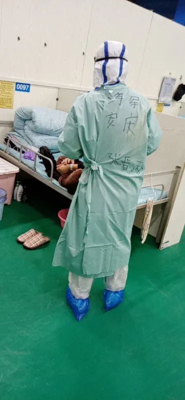 在进入到方仓后,眼前的景象的让我感觉很温暖,也立刻消除了我的恐惧和担忧,每个人都穿着密不透风的防护服,戴着有些模糊的护目镜,忙碌的穿梭在人群中,所有的工作都井然有序,虽然我看不到她们谁是谁,但是她们温暖的眼神和轻柔的话语让我顿时感觉到如沐春风。时间仿佛过得很快,第一班岗也到了时间,我们在认真的交接班以后,来到了脱防护服的污染区。舱内的6小时,汗水早已浸湿了我的衣服,我害怕过,害怕眼前这一切当真就会贯穿我们的生命,令人看到终点。也感动过,感动患者和我们虽然陌生,但我们相互信任。