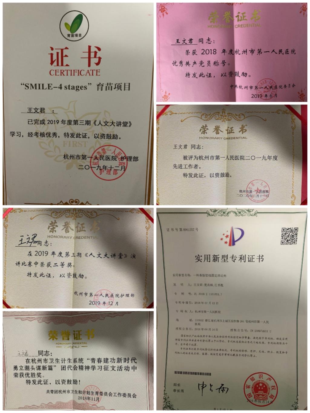 2019年12月获得杭州市第一人民医院颁发的《人文大讲堂》优秀学员证书;
