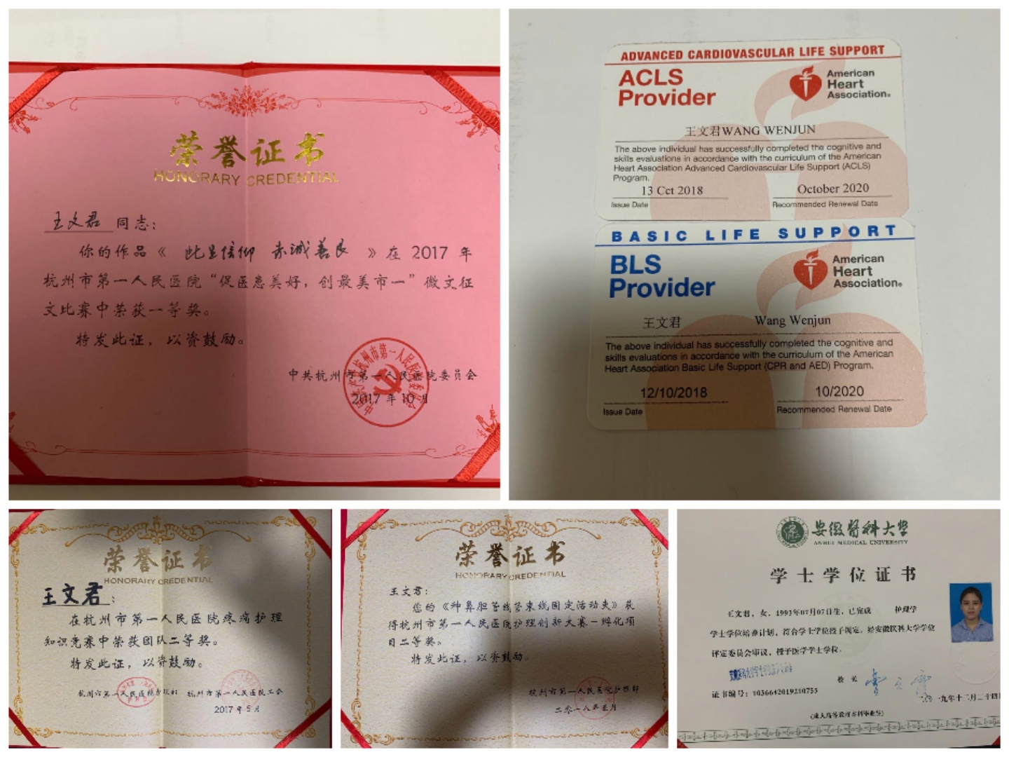 2018年10月获得美国心脏协会颁发的“BLS和ACLS”证书;