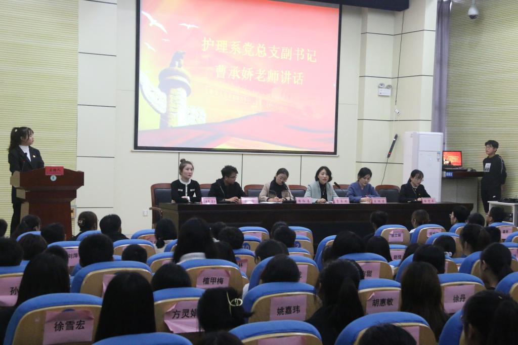 曹承娇代表护理系党总支向此次大会的召开表示了热烈的祝贺,她指出,学代会是我系青年团员政治生活的一件大事,开好这次大会,对进一步团结动员全系青年学子、在安庆医专建设进程中发奋成才、贡献青春有着积极的意义。她希望新一届学生委员会把引领同学坚定跟党走作为首要职责,建设政治可靠的学生会组织;把服务同学成长成才作为工作主线,坚持“全心全意为同学服务”的宗旨,帮助同学解决实际困难;把坚持不懈推动自我革命作为发展动力,建设走在前列的学生会组织。