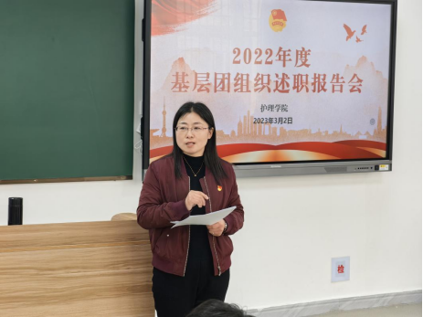 为深入贯彻落实基层团组织书记述职评议考核制度,落实全面从严治团要求,进一步压实基层团组织书记责任,加强和完善护理学院共青团的基层建设。2023年3月2日中午,护理学院在实训楼一楼示教室召开了2022年度基层团组织书记述职报告会。院党总支副书记路红春、学院团总支书记汪玉莹及团干老师、各班团支部书记参加会议。