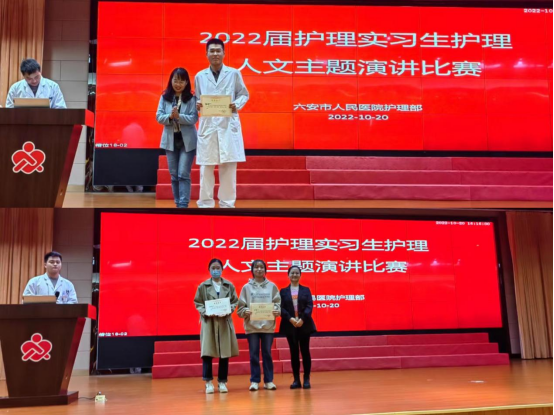 10月20日,六安市人民医院举办了2022届护理实习生护理人文主题演讲比赛。今年会韩文松同学和徐曼同学分别获得一等奖和二等奖。