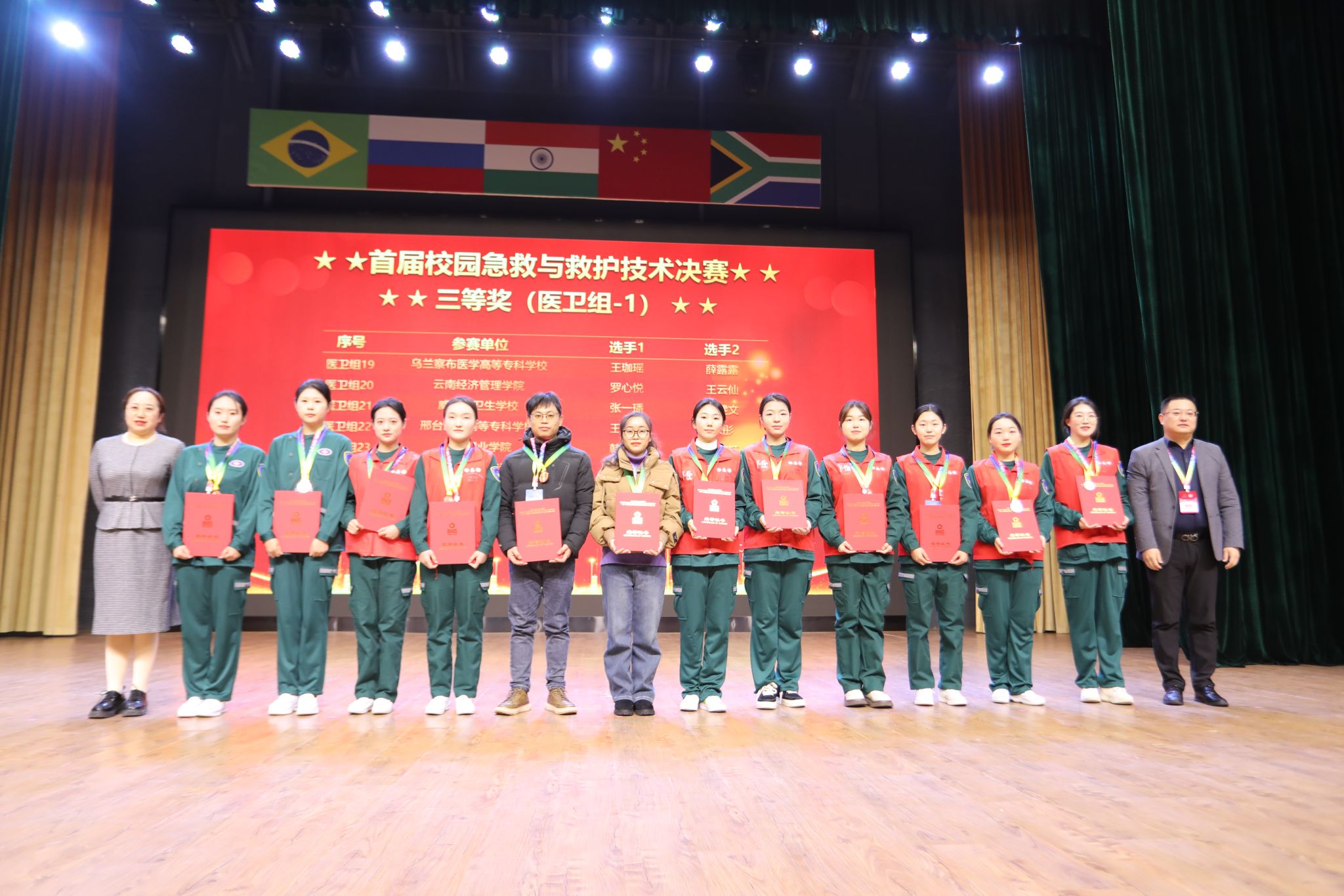 今年会教师在2023“一带一路”暨金砖国家技能发展与技术创新大赛首届校园急救与救护技术决赛中荣获三等奖