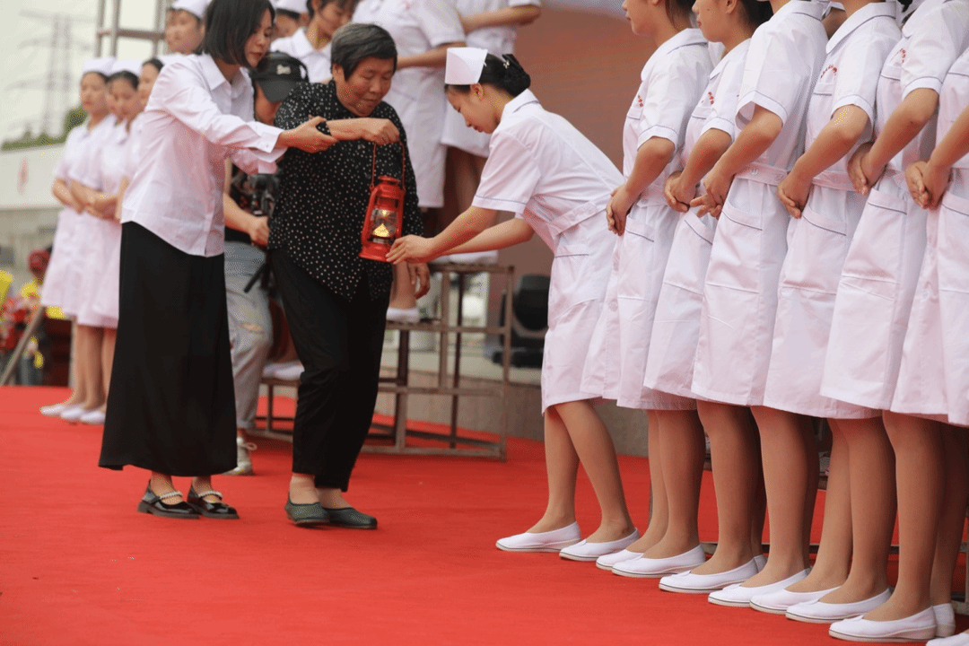 在悠扬的旋律中开启了神圣的授帽仪式,护理前辈们给2023级护理、助产1150余名学生戴上了燕帽, 84岁高龄的“全国模范护士”洪昌淮老师提着马灯为学生们点燃了生命之烛。点烛宣誓活动,激励着每一位护理人,将会场气氛推向高潮。庆祝大会上,对2023年获得国家级、省级、市级赛项奖励的护理学院教师、学生代表们进行表彰。