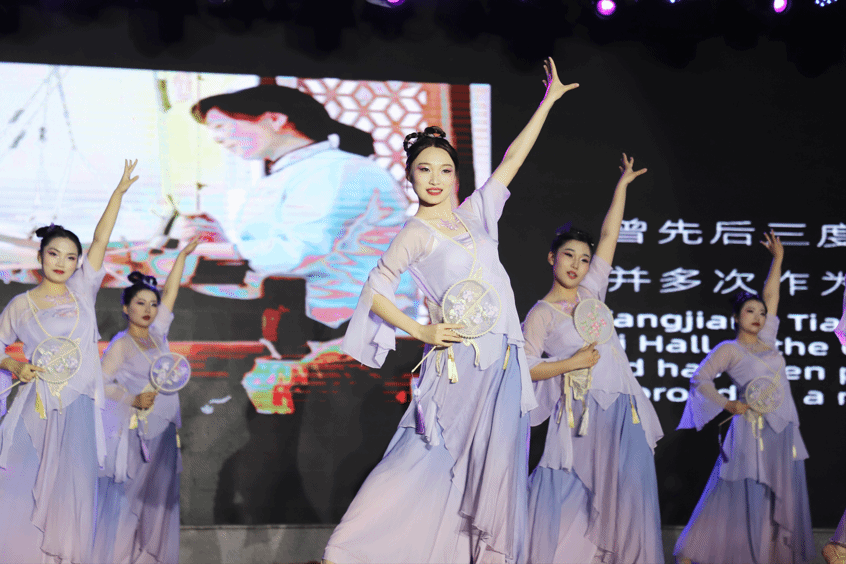 言心心理社活力四射的青春律动操《悦动青春》拉开晚会序幕。挑花社带来的《西楼别序》将古典舞与非物质文化遗产“望江挑花”相结合,充分展示中华优秀传统文化的魅力。情景朗诵《医舞诗韵》由青廉社和天使启航社联袂出演,誓言铮铮,是学子们立志廉洁从医,共建廉洁校园,扣好“人生第一粒扣子”。歌曲《没抓紧的爱》中流行歌曲与传统戏曲的碰撞,让人耳目一新。艺术团节目《西湖子·初妆》的舞蹈演员们用灵动的舞姿,描绘了一幅江南水韵幽静与美丽的画卷。敬老学社精心编排的原创情景剧《爱助夕阳》,用幽默风趣的剧情,展现人口老龄化背景下陪诊师等新兴职业对于老年人健康的价值与意义,同时呼唤社会对失能老人的关注。《入梦兰亭》中,汉韵匠艺文化社的社员们身着精美的传统服饰翩翩起舞,让人恍若穿越时空。M-Soul街舞滑板社带来的街舞《Drama》充满青年人的活力与热情,火热的舞蹈瞬间将现场的气氛点燃。艺术团的诗朗诵《我的南方和北方》,吟诵祖国的大好河山,气势磅礴,令人动容。