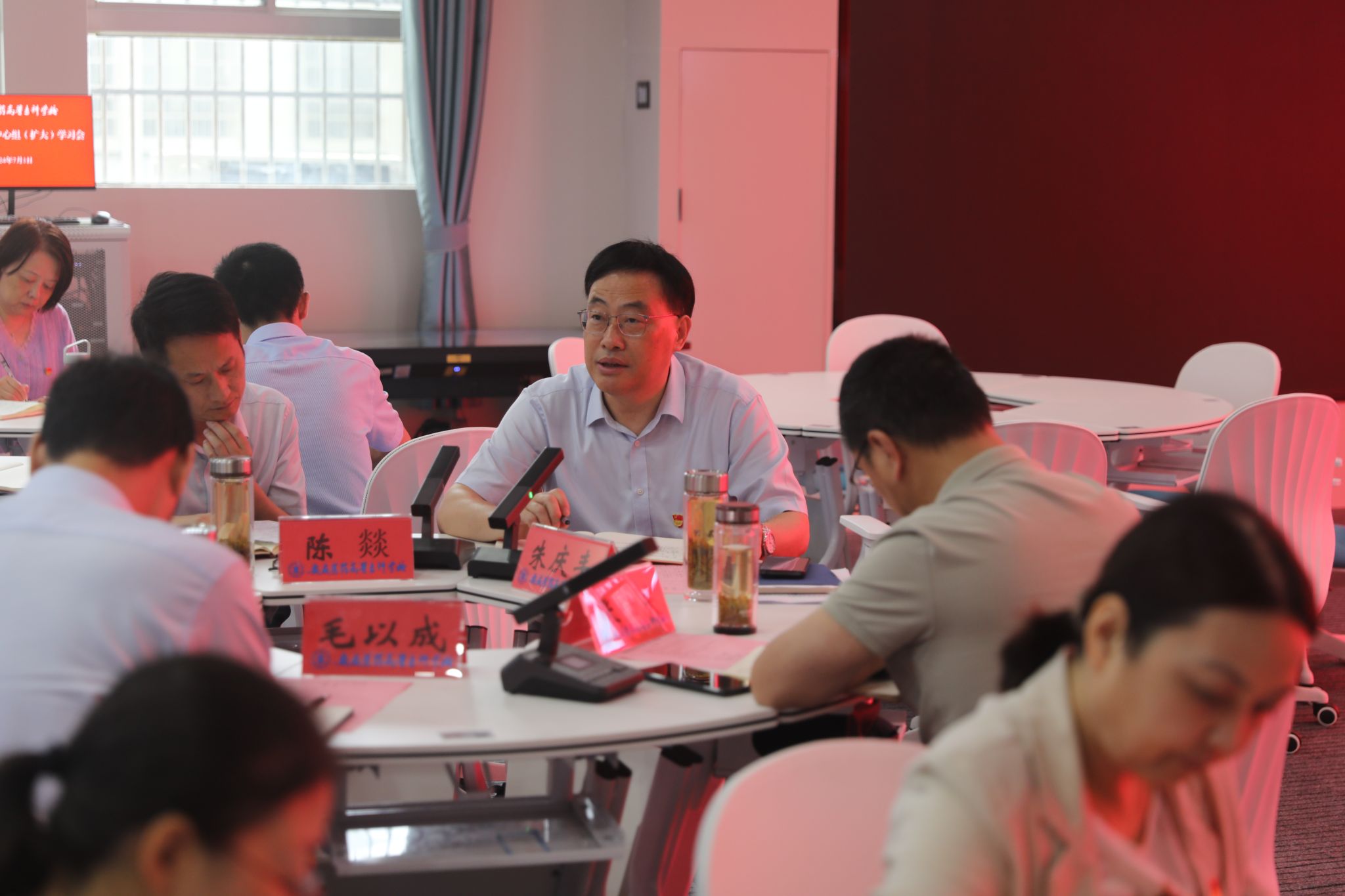 为庆祝中国共产党成立103周年,进一步推动党纪学习教育走深走实,7月1日上午在校智慧思政教室,校党委召开庆祝建党103周年主题党日活动暨理论学习中心组学习(扩大)会议,校党委副书记、校长朱庆丰主持会议。全体校领导、职能部门主要负责同志、各二级党组织负责同志参加。