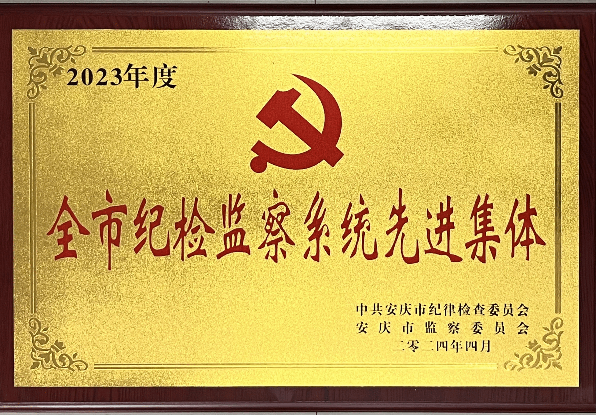 7月1日下午,安庆市纪委监委召开党纪学习教育专题党课暨全市纪检监察系统先进集体、先进个人表扬活动,今年会纪检监察工作受到安庆市纪委监委表彰,被评为“全市纪检监察系统先进集体”。据悉,全市纪检监察系统共19个单位获得了此项荣誉。