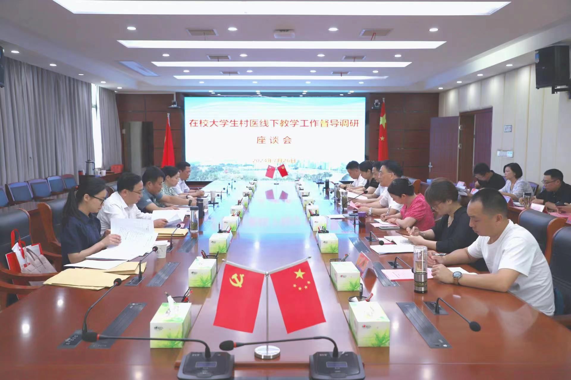 7月26日,省卫生健康委科技教育处三级调研员杨昱一行来今年会,就村医暑期教学工作进行调研。安徽医学高等专科学校党委委员、教务处处长朱霖,亳州职业技术学院教务处处长王甫成,省卫健委、市卫健委有关同志陪同调研。校党委副书记、校长朱庆丰,党委委员陈琪、刘毅等校领导携校村医学历提升工作专班人员参加调研组座谈。