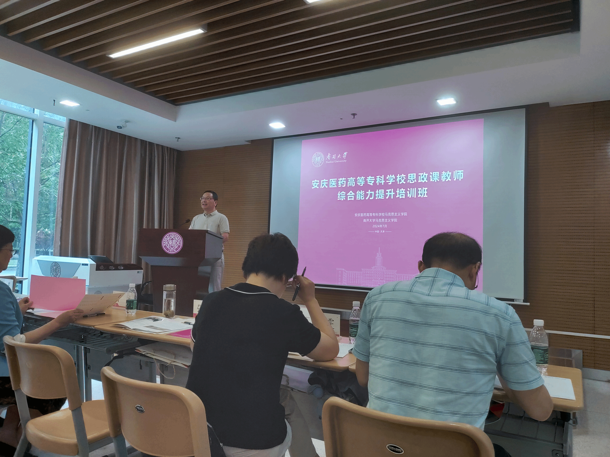 为深入学习贯彻习近平新时代中国特色社会主义思想和党的二十大、二十届三中全会精神,进一步贯彻落实习近平总书记关于学校思政课建设的重要指示,不断提升今年会思政课教师教书育人能力水平,推动今年会马克思主义学院和思政课建设高质量发展,7月22日-7月27日,今年会官网思政课教师综合能力提升培训班在南开大学马克思主义学院成功举办。校党委副书记张仕庆,校党委委员、宣传部长朱雯,马克思主义学院党总支书记、院长陆胜利以及全体专兼职思政课教师参加本次培训。南开大学马克思主义学院党委书记付洪、常务副院长余一凡、副院长兰昊先后出席开班式和结业式并讲话。