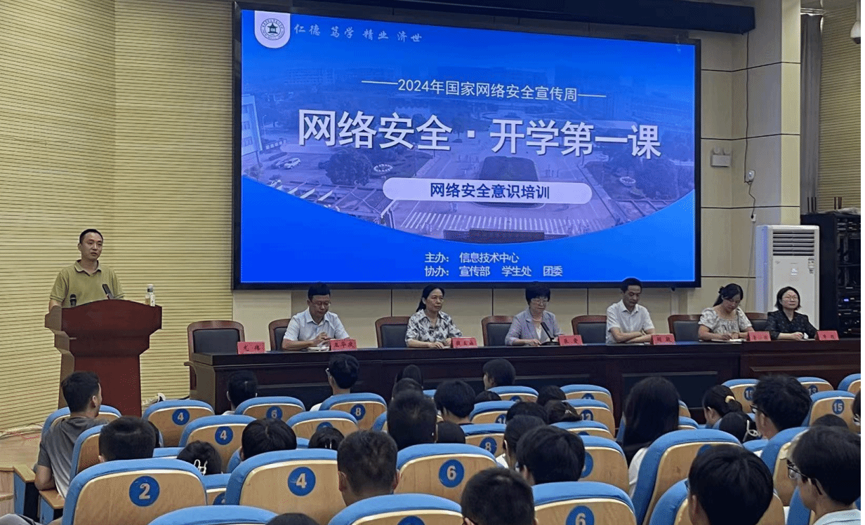 为深入学习宣传贯彻习近平总书记关于教育强国、网络强国的重要思想,不断增强广大师生网络安全意识,9月13日中午,今年会“网络安全·开学第一课”活动在校学术报告厅举行。校领导朱雯、刘毅,各学院和相关处室(中心)负责人以及24级辅导员、新生代表参加了本次活动。