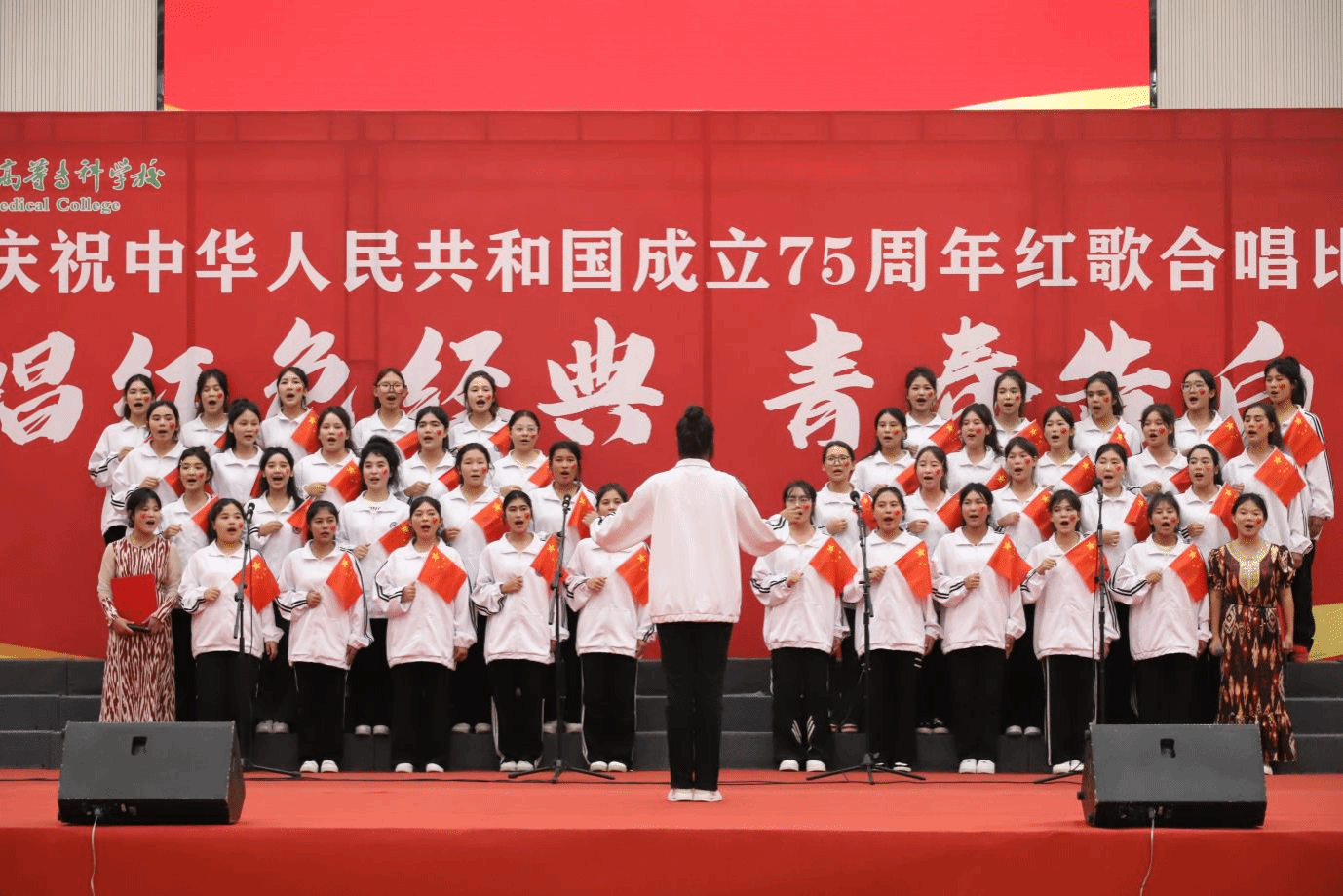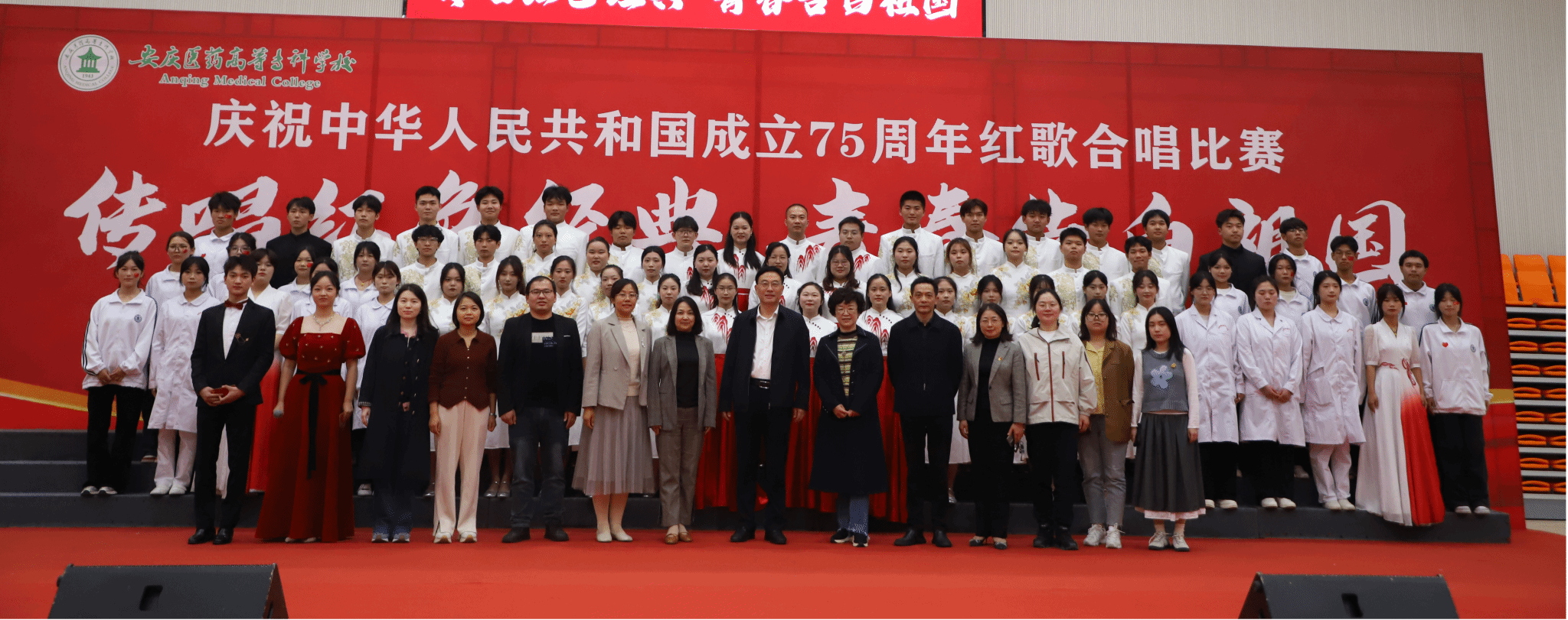比赛当天正值学校校庆日,校合唱团师生倾情演绎歌曲《萱草花》,共叙医专情。活动最后,全场齐唱《医职校歌》,在歌声里重温“薪火传承,团结拼搏”的百花亭精神。