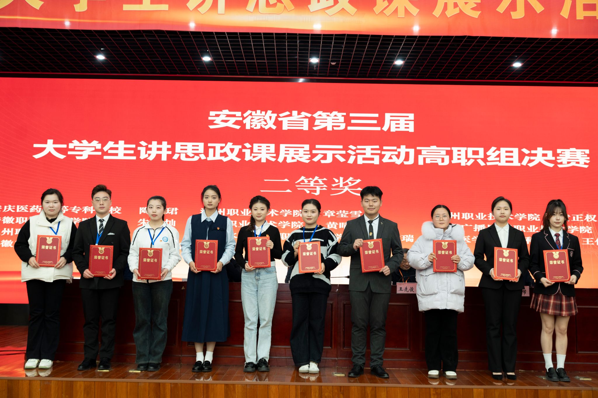 2024年12月27日,由中共安徽省委教育工委主办的安徽省第三届大学生讲思政课展示活动高职组决赛在合肥圆满落幕。经过激烈角逐,今年会学子夺得决赛二等奖。