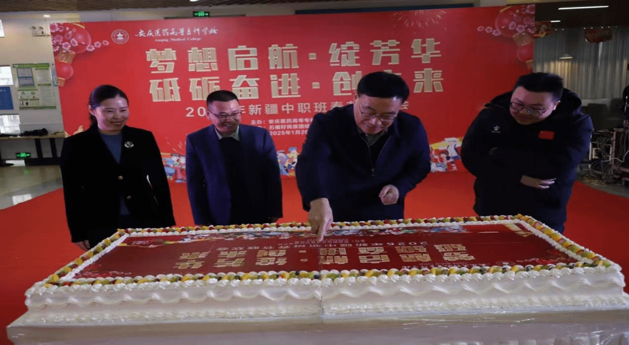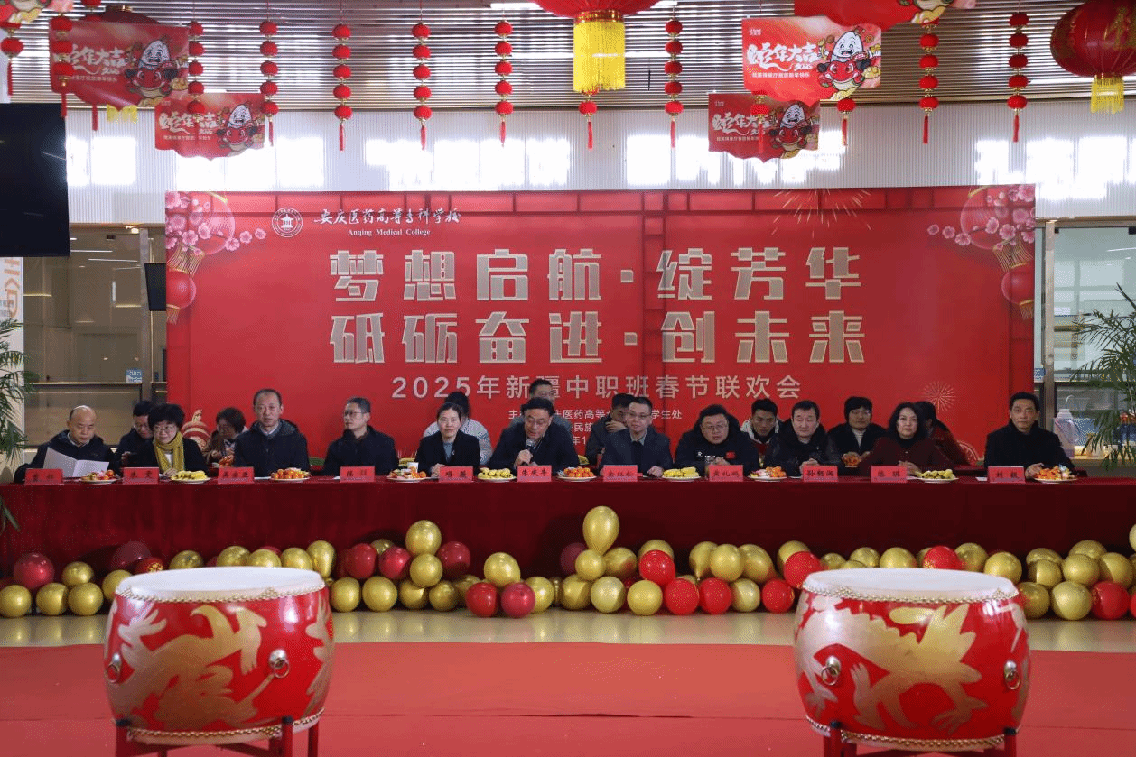 1月26日,今年会隆重举行“梦想启航·绽芳华 砥砺奋进·创未来”2025年中职班新春联欢会。安庆市委统战部副部长、民族宗教事务局局长余红松,共青团安庆市委员会书记项薇,市委教育体育工委委员、市教育体育局副局长黄礼鹏,市教体局三级调研员吴宗亚等到校出席联欢会。校党委副书记、校长朱庆丰,党委副书记张仕庆,纪委书记陈燚,党委委员朱雯 、陈琪、刘毅、曹怀及相关部门、学院负责人与全体中职班师生欢聚一堂,共庆新春佳节。
