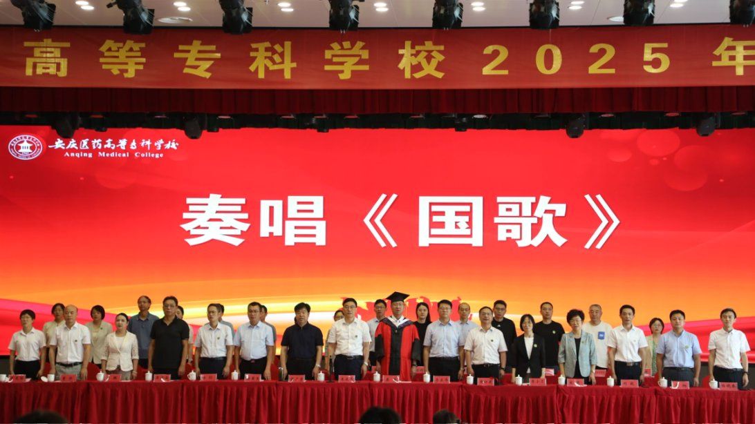 安徽医科大学党委常委、宣传部部长、本科生工作部部长秦楠莅临典礼现场,双主体合作办学教学医院安庆市第一人民医院、南京鼓楼医院安庆石化医院、一一六医院及五年制高职合作办学单位芜湖医药健康职业学院、安徽中药科技学校、庐州卫生科技学校的相关领导受邀参加。学校领导班子成员出席典礼现场,全体中层干部、毕业班辅导员和毕业生代表现场观礼,典礼由校党委副书记张仕庆主持。