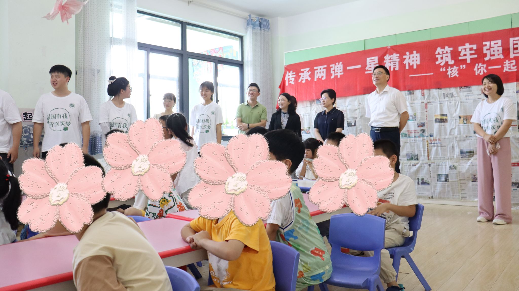 朱庆丰一行走进教室,观摩实践团成员的暑期趣味课堂。实践团结合专业特色与红色教育,通过生动宣讲“两弹一星”精神,以科学家爱国奋斗故事点燃孩子们的理想火种;发挥医学专长,为幼儿园小朋友量身定制趣味生理健康课程,帮助树立科学健康意识;针对暑期安全防护,开展防溺水知识宣讲,通过情景演示、互动问答和学唱防溺水主题歌曲《“泳”气大爆发》,寓教于乐提升幼儿自救能力。今年暑期,团队先后前往潜山县、怀宁县、宜秀区等地开展活动10余场,并成功入选2025年全国大学生“两弹一星”精神志愿宣讲团。