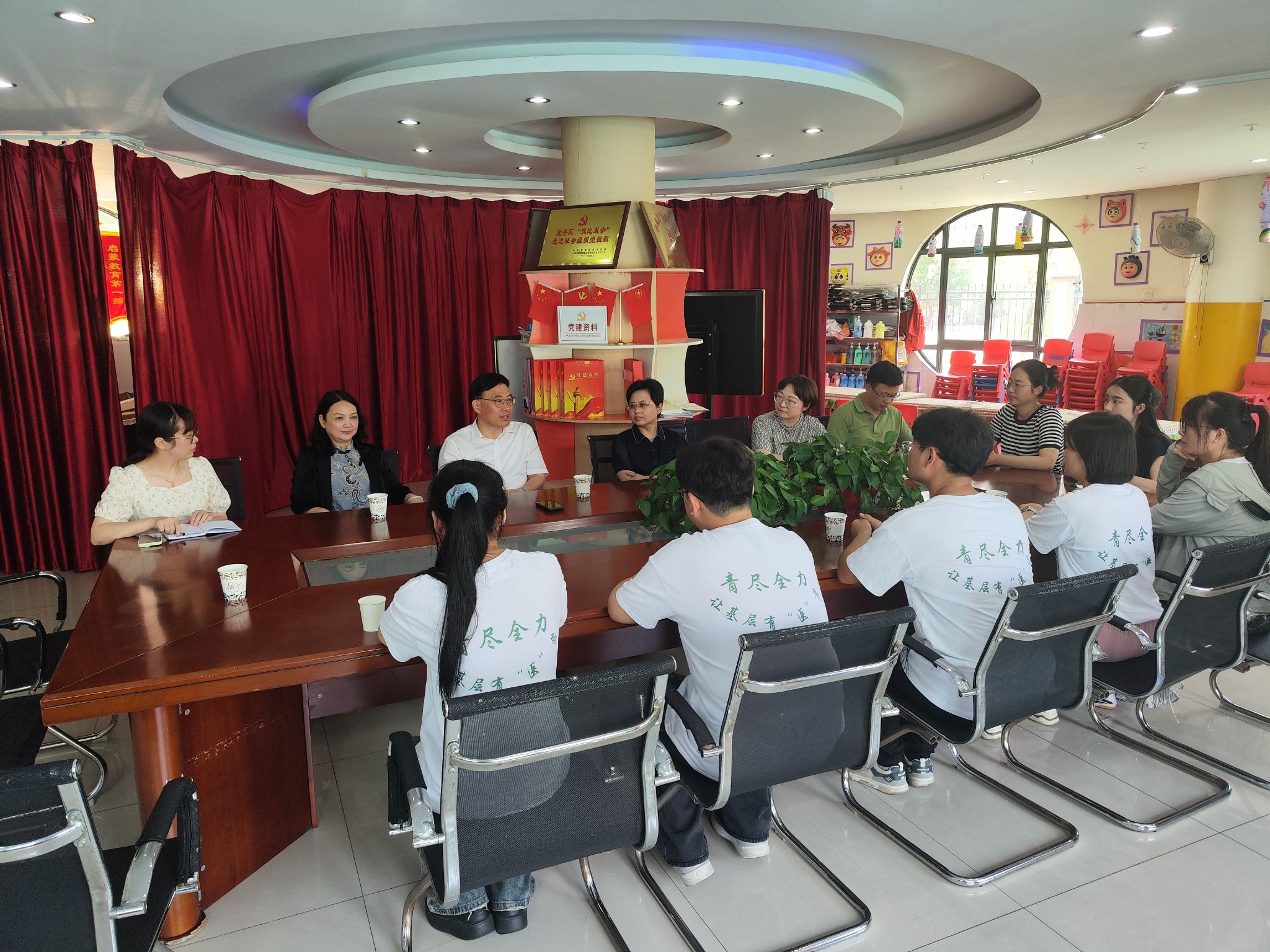 7月2日上午,校党委副书记、校长朱庆丰一行赴安庆市皖红新城名都幼儿园,亲切看望慰问在当地开展社会实践活动的医学院“深耕红土,追光逐梦”实践团师生,实地调研学校暑期“三下乡”活动开展情况。宜秀区委副书记黄震出席,校党委委员、党政办主任陈琪,团宜秀区委、学校团委及医学院党总支负责人陪同调研。